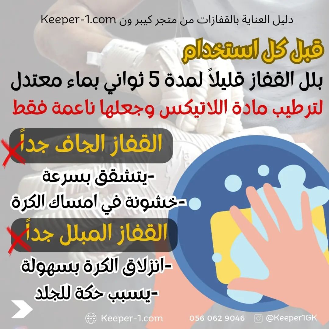 📍 نحتاج تبليل القفازات لمدة 5 ثواني، لتمتص مادة اللاتيكس الماء وتبقى في حالة رطبة وطرية وليست جافة. ليساعدك في امتصاص الكرة GRIP 🧲.