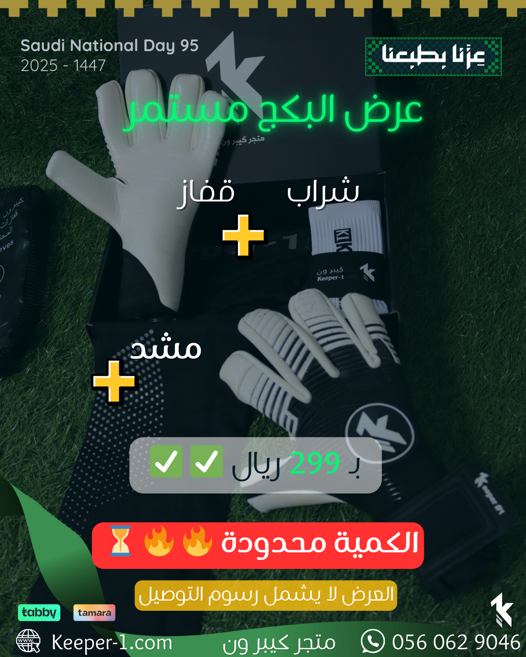 بمناسبة اليوم الوطني السعودي 95 جهزنا لكم أقوى العروض الحصرية لحراس المرمى في السعودية. كل العروض مفعلة تلقائياً عند إضافة المنتجات إلى السلة بدون أكواد خصم.